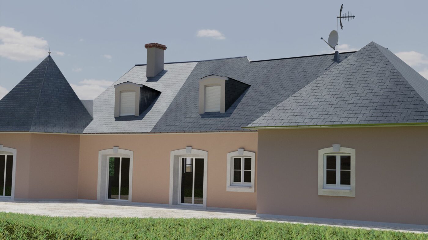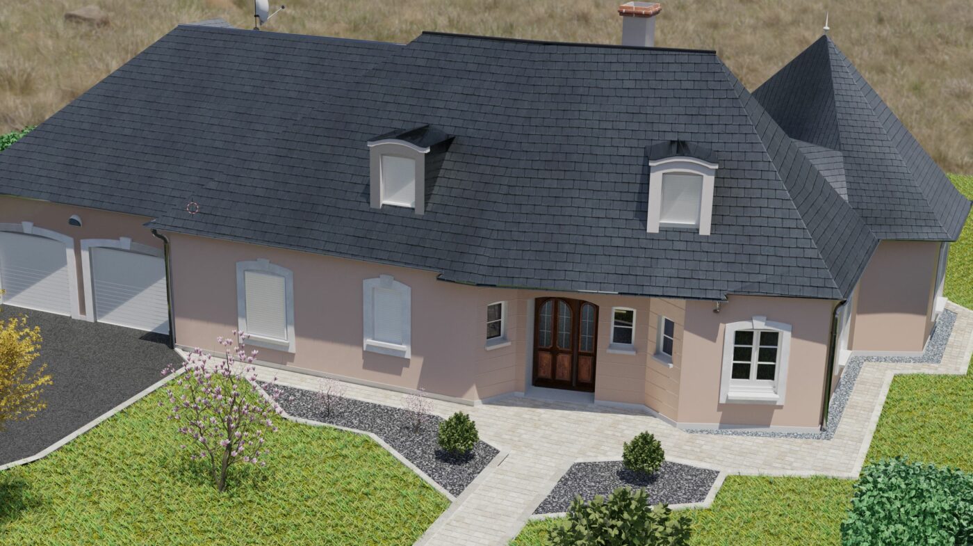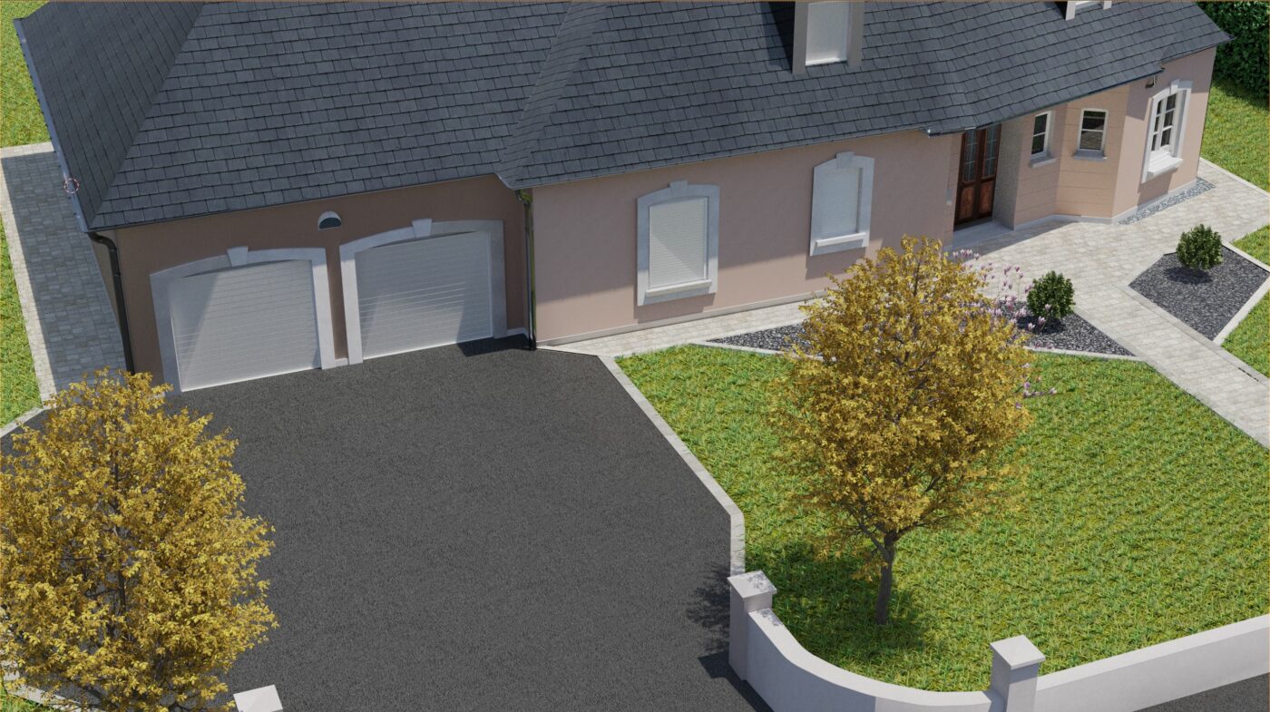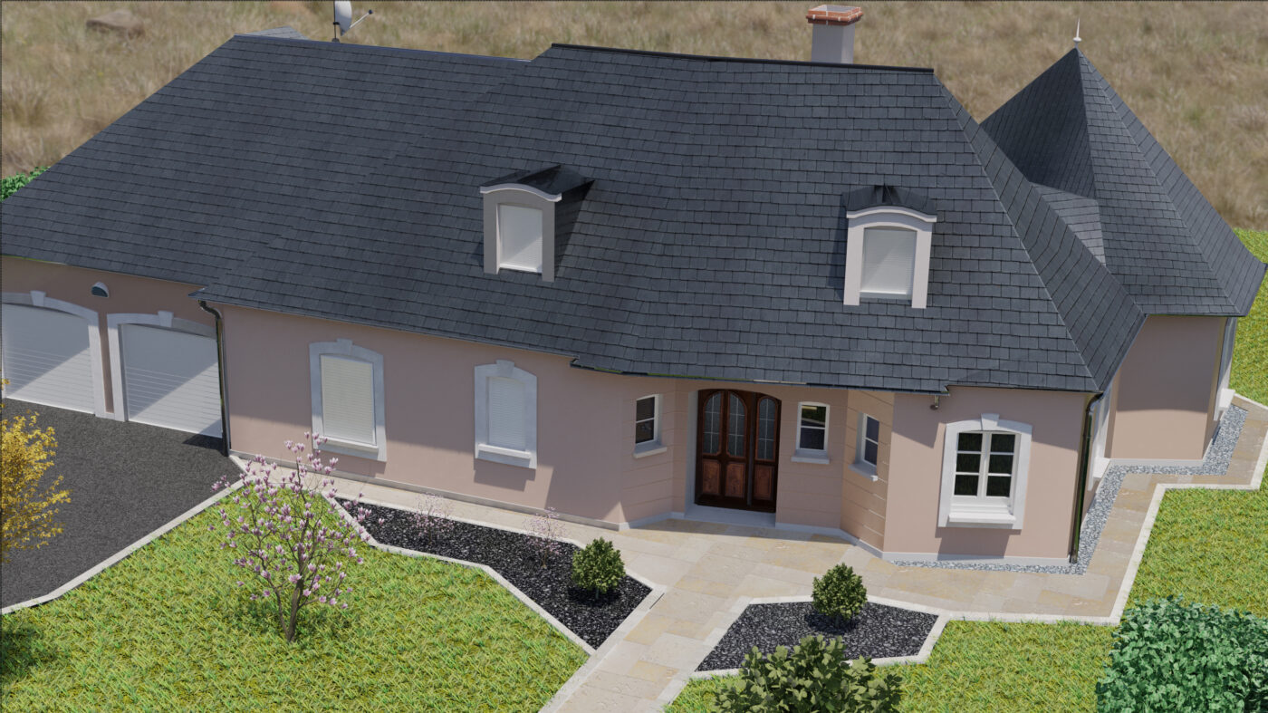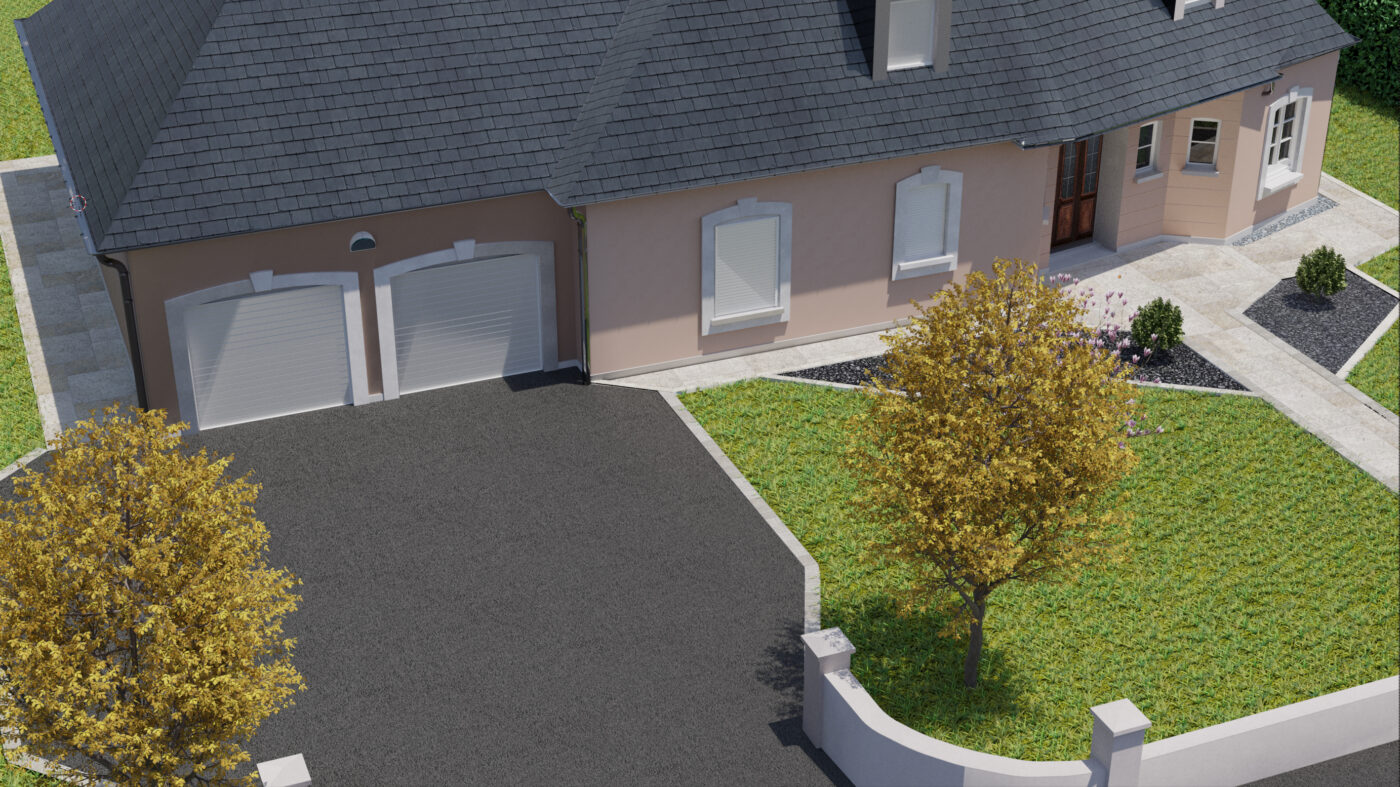 Projet touchant le monde du paysagisme, la maison fut re modéliser en 3D à partir de photo prise sur place, puis la terrasse modélisée et placée selon les indications du paysagiste afin d’obtenir un rendu proche du résultat final afin d’aider les clients à mieux se projeter dans leur projet de terrassement.